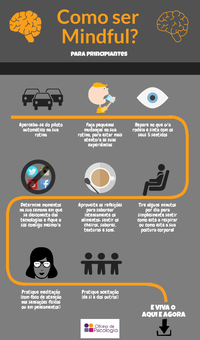 Quando praticamos Mindfulness estamos a prestar atenção de propósito, no momento presente (aqui, agora) e buscamos não fazer julgamentos. Concentrar-se no momento atual significa estar em contato com o presente e não estar envolvido com lembranças ou com pensamentos sobre o futuro. Considerando que as pessoas hoje em dia funcionam no piloto automático, a intenção da prática de Mindfulness seria exatamente trazer a atenção plena para a ação no momento atual. ‘Intencional’ significa que o praticante de mindfulness faz a escolha de estar plenamente atento e se esforça para alcançar esta meta.