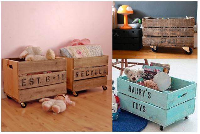 1º. Caixas de arrumação em madeira. Aqui a ideia é reutilizar aquelas