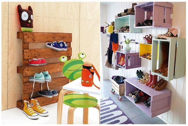 uma sapateira original, utilizando paletes de madeira. Podemos mesmo criar uma sapateira